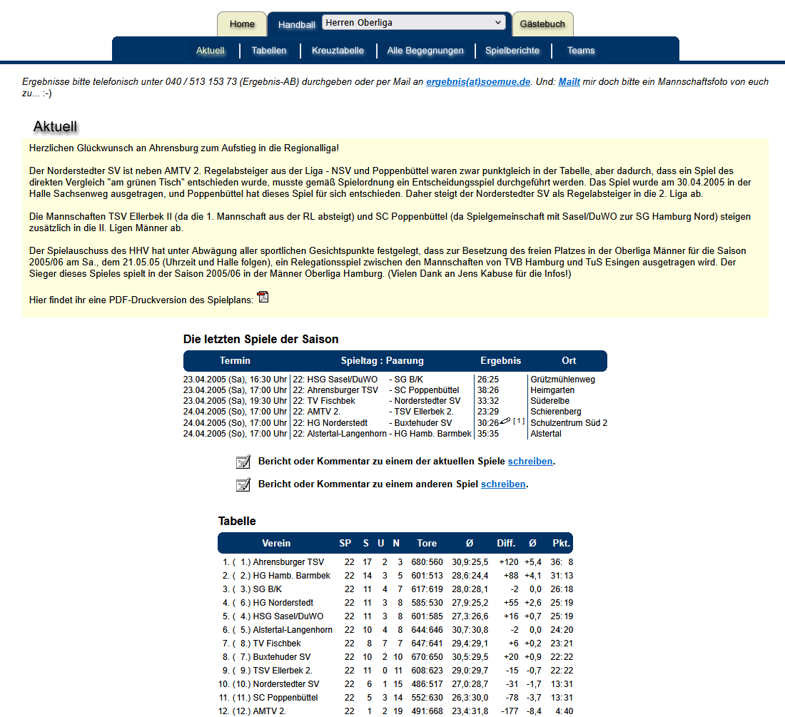 Vier Jahre, in den Jahren 2002 bis 2005, habe ich diese Website mit Informationen zu ausgewählten Ligen